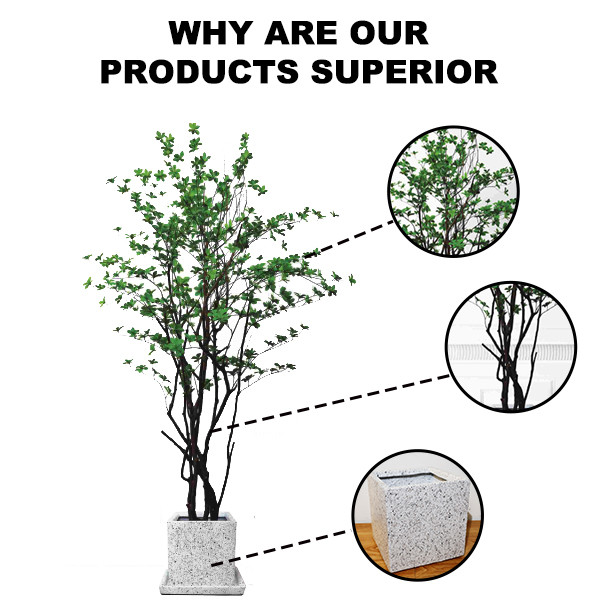 2.[สาขาที่ปรับได้และหม้อที่แข็งแกร่ง]พืชเทียมของเรามาพร้อมกับกระถางเพาะชำพลาสติกที่แข็งแรงซึ่งเต็มไปด้วยฐานซีเมนต์หนักเพื่อเพิ่มความมั่นคงและทนต่อลมแรง