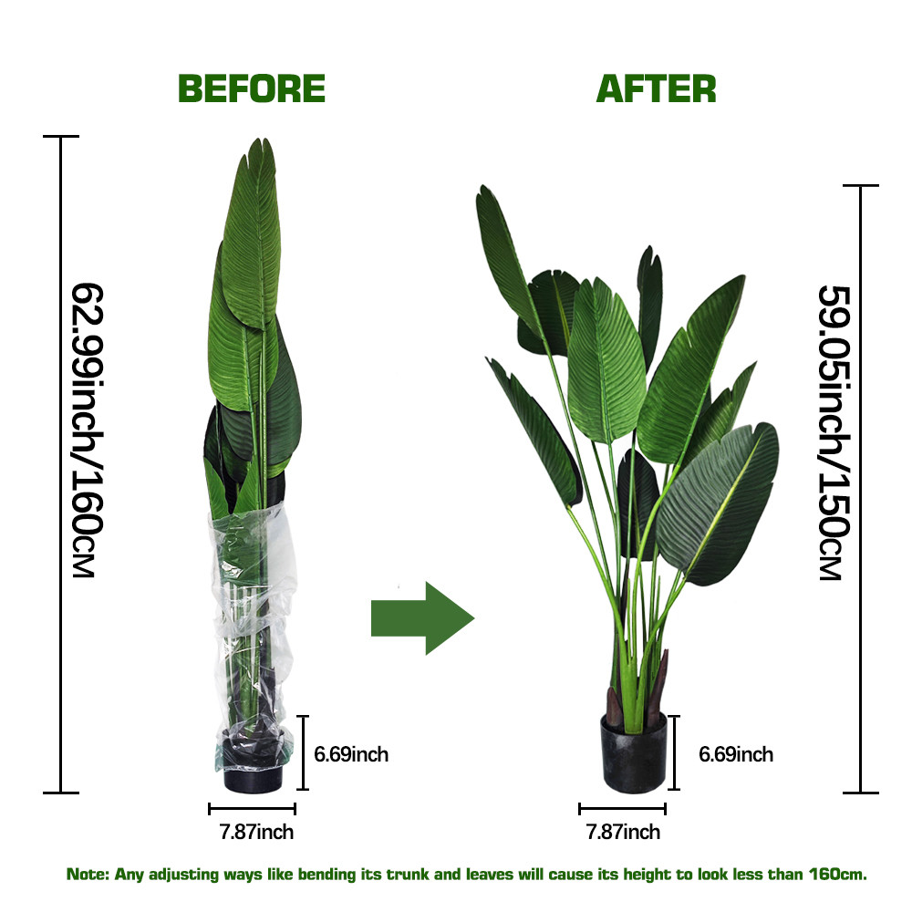 ประดิษฐ์สำนักงานพืชในร่ม 160 ซม.Traveler's Palm Fake potted ต้นไม้พืชชั้นไม่มีพยาบาล Evergreen Garden Use