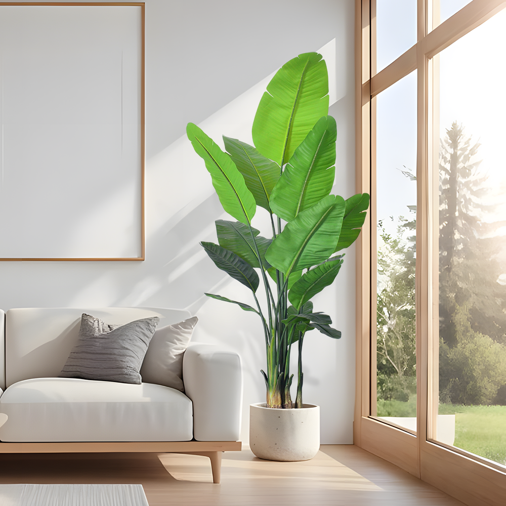 ยกระดับพื้นที่ของคุณด้วยความงามเหนือกาลเวลาของเขตร้อน ต้นไม้ประดิษฐ์ Birds of Paradise อันประณีตของเราจับภาพความโดดเด่นของต้น Strelitzia ที่น่าทึ่งด้วยความสมจริงอย่างหาที่เปรียบมิได้ ด้วยใบพัดที่กว้างและเขียวชอุ่ม และลำต้นที่ได้สัดส่วนอย่างสมบูรณ์แบบ ต้นไม้ปลอมนี้จึงนำความสง่างามสไตล์รีสอร์ทที่สดใสมาสู่ทุกการตั้งค่าโดยไม่ต้องบำรุงรักษาใดๆ คงความสดและเขียวขจีตลอดไป เหมาะอย่างยิ่งสำหรับการเพิ่มความสดใสให้กับมุมที่มีแดด สร้างจุดโฟกัสในร่ม หรือปรับปรุงพื้นที่ใช้สอยกลางแจ้งที่ปราศจากศัตรูพืช